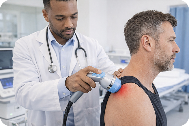 Our advanced shockwave therapy technology stimulates the body’s natural repair processes — helping patients recover from chronic tendon, ligament, and joint conditions without surgery or prolonged medication use.